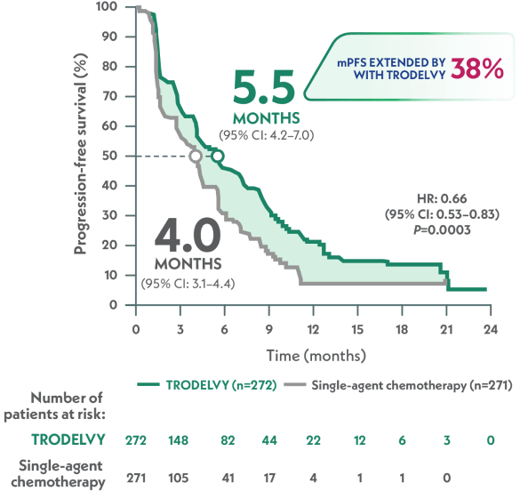 TRODELVY demonstrated superior mPFS vs single-agent chemotherapy1